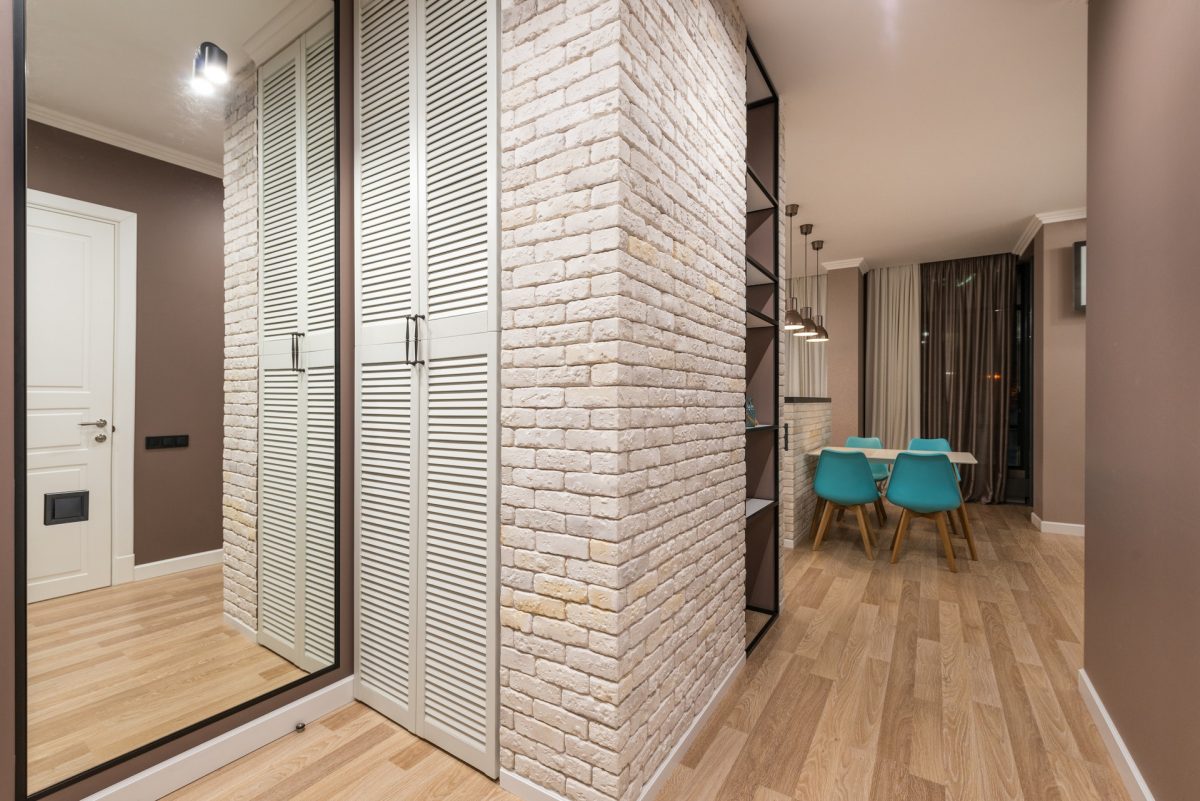 Un armadio posto direttamente di fronte alla porta principale non è un errore. Infatti, con la giusta mentalità, un layout insolito può essere sia bello che funzionale. In questo ingresso, una grande libreria inclinata dalla linea di vista diretta tiene gli oggetti dell’ingresso. Una finestra e sciarpe colorate catturano l’attenzione degli ospiti che attraversano la porta. Una panchina ben posizionata fornisce un posto per sedersi e togliersi le scarpe.