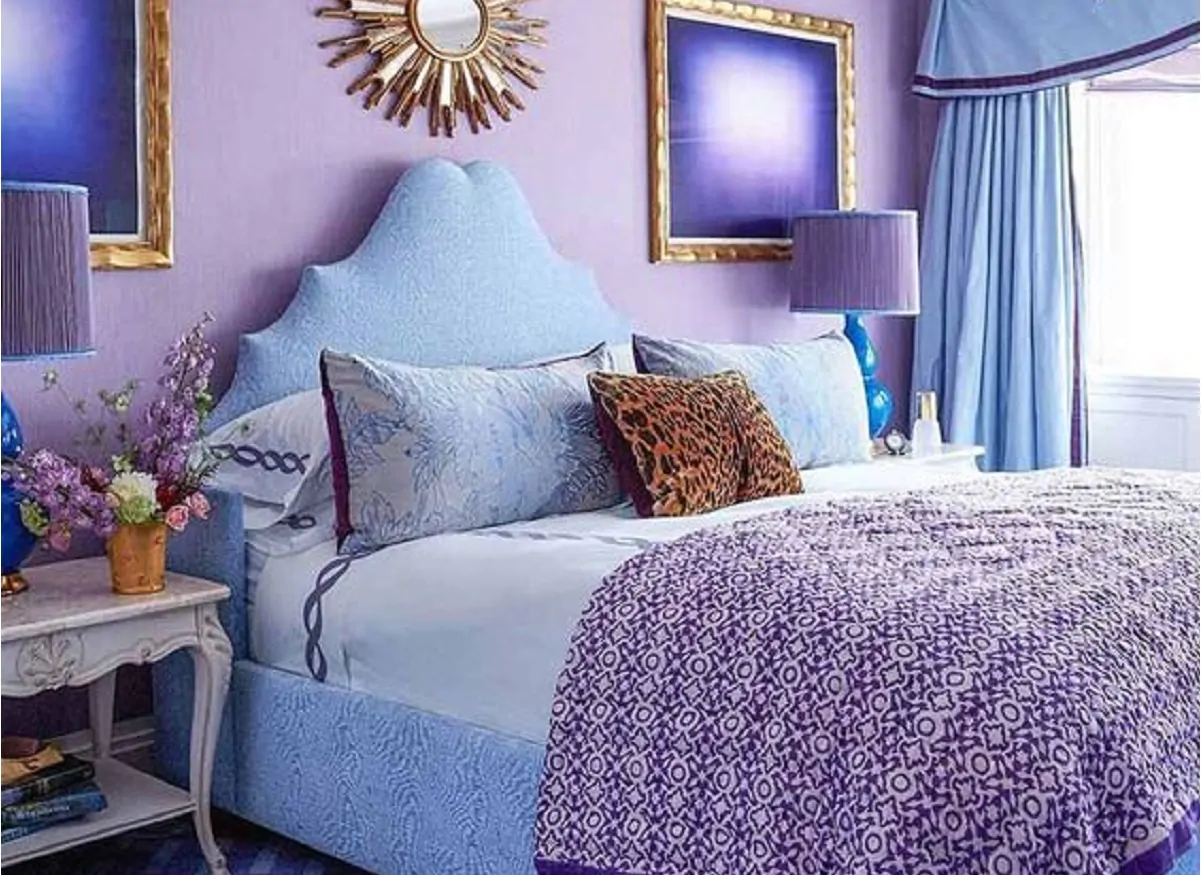 Anche nelle camere classiche si può utilizzare il colore dell’anno perché il bianco o il beige si adatta perfettamente ad un colore più forte come il Very Peri. Si può utilizzare per la testata del letto o per singoli elementi come tende e cuscini. In questo modo l’effetto è leggero e calmante e molto delicato.