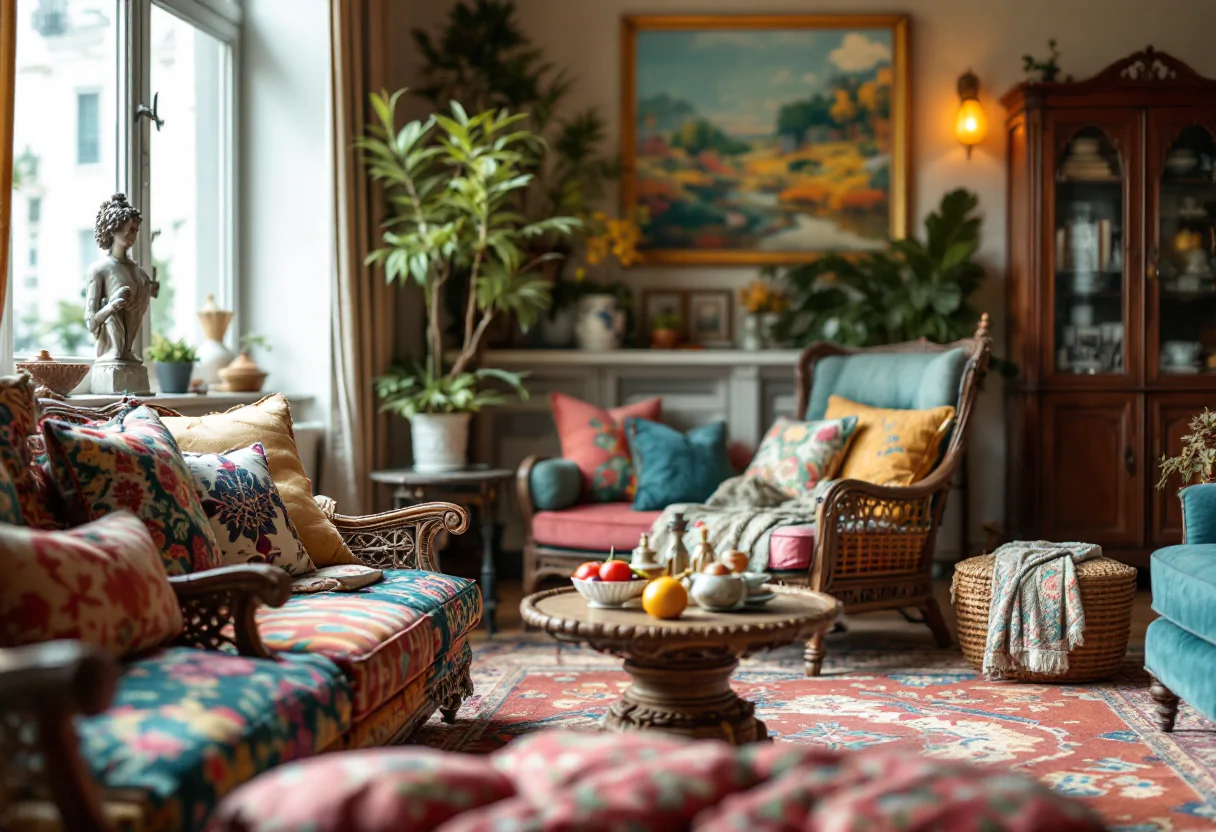 Gli accessori e le decorazioni giocano un ruolo chiave nel massimalismo. L’arte di stratificare è essenziale per ottenere un effetto ricco e sofisticato. Sovrapporre tappeti, combinare quadri di diverse dimensioni e mescolare oggetti di design con elementi vintage crea profondità e personalità. È importante evitare di sovraccaricare tutte le pareti: una combinazione equilibrata di zone decorate e spazi più neutri consente di valorizzare ogni elemento senza creare confusione. La scelta degli oggetti decorativi deve seguire una logica estetica e personale, evitando di affastellare troppe cose su ogni superficie.