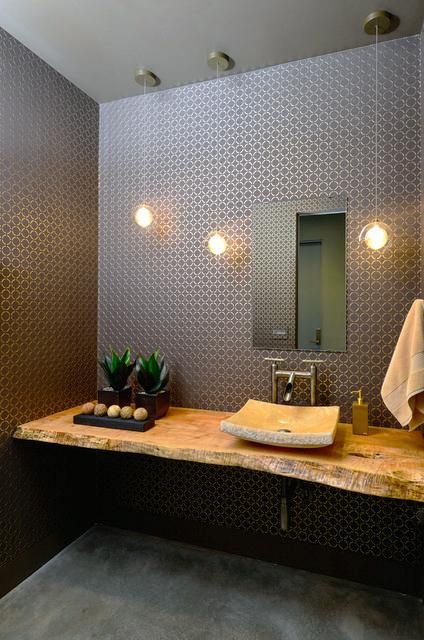 Ecco che immediatamente il bagno diventa una stanza interessante in stile moderno, e tutto grazie alla texture del legno, calda e accogliente.
