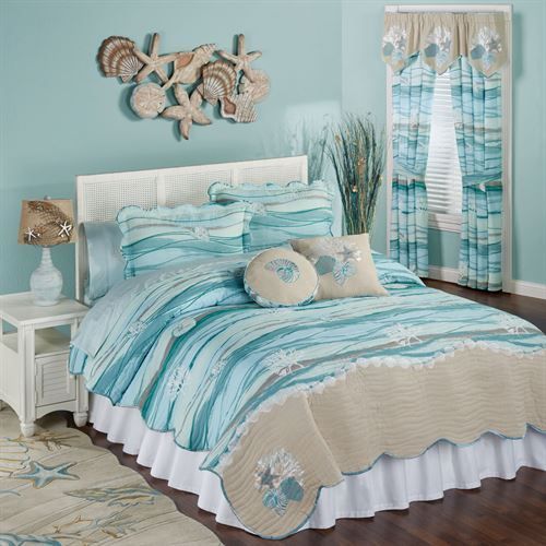 Lenzuola che devono essere dei colori sopra citati, oppure a righe bianche e blu, che fa molto marinaro. Ma si possono scegliere delle lenzuola con stampe con conchiglie, coralli, anguria o mare. Queste stesse fantasie le si può trovare anche sulle federe per i cuscini, i quali possono essere distribuiti sul letto e sulle potrone o sedie, se sono presenti nella camera.