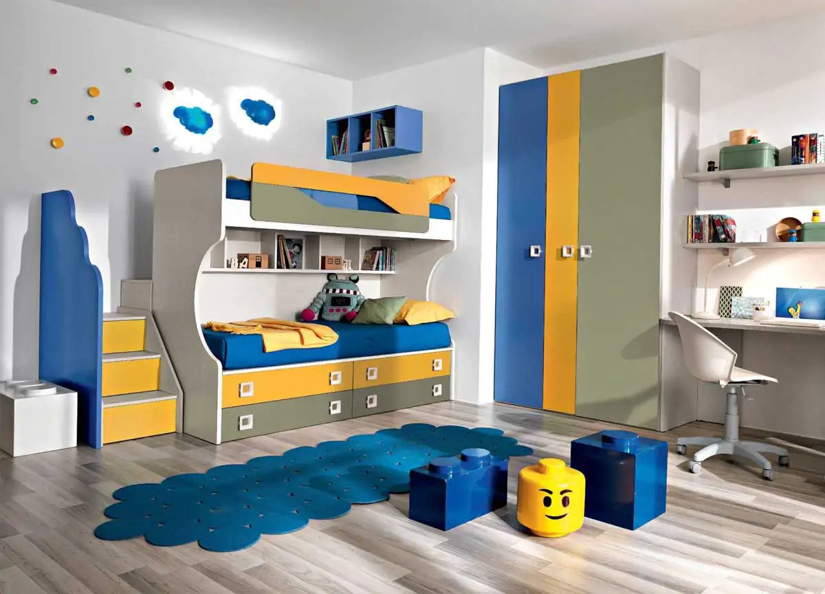 Se l’ambiente è più ristretto, è preferibile un letto a ponte, con secondo letto estraibile, dotato armadietti per libri o vestiti.