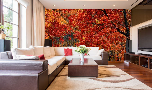 I fotomurali, ad esempio, si prestano perfettamente a questo compito con le loro sfumature. Inoltre, danno maggiore profondità all’ambiente per mezzo di un’illusione ottica. Se usati per il soggiorno, risaltano la personalità della stanza.
