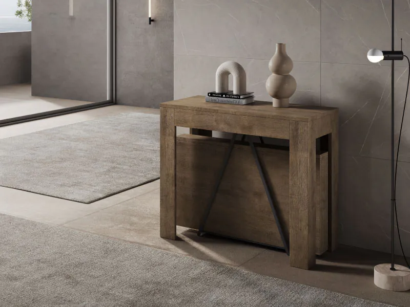 Tra le soluzioni più rappresentative della nuova concezione di arredo funzionale si distingue il tavolo consolle allungabile, elemento progettato per adattarsi a contesti dinamici. Compatto quando chiuso e facilmente estendibile in occasione di ospiti o esigenze particolari, questo complemento interpreta con efficacia il concetto di versatilità. La qualità delle guide, la stabilità della struttura e la precisione degli incastri diventano aspetti centrali, soprattutto in un prodotto sottoposto a frequenti trasformazioni.