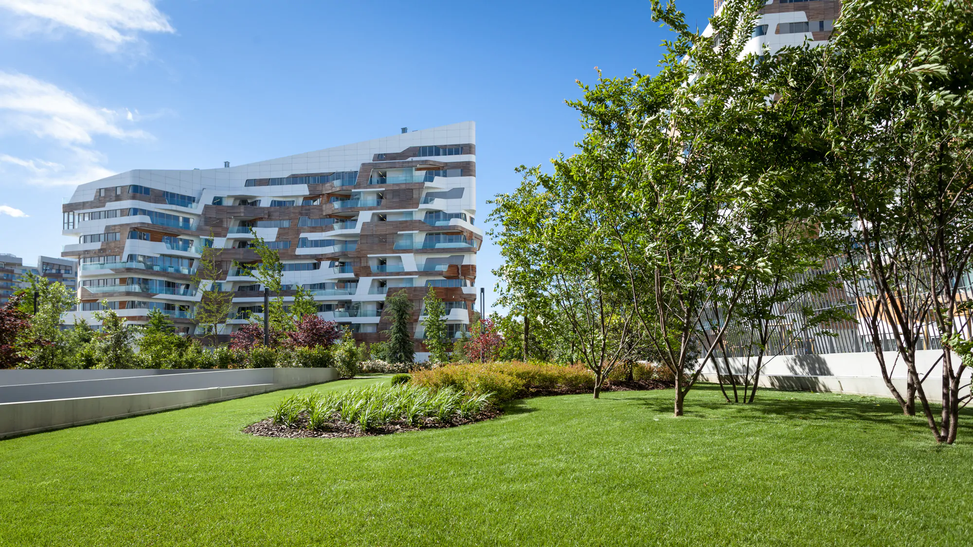 Lo skyline del quartiere sarà caratterizzato da una linea sinuosa. Le nuove costruzioni di Citylife si differenzieranno per altezza. In totale, saranno realizzati sette edifici curvi, compresi tra 5 e i 13 piani. A dare movimento allo skyline sarà il contorno dei tetti e la conformazione curva dei balconi  e delle terrazze coperte. Il tutto conferirà morbidezza ed eleganza all’intero panorama.