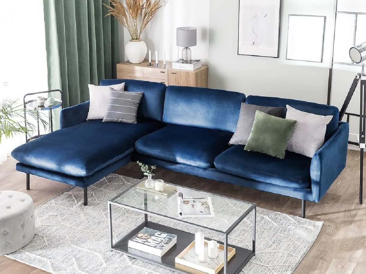 Sia che la tonalità sia scura o chiara, che il materiale sia pelle, stoffa o velluto, il blu richiama la vivacità magica dell’arancione, meglio se non troppo acceso.