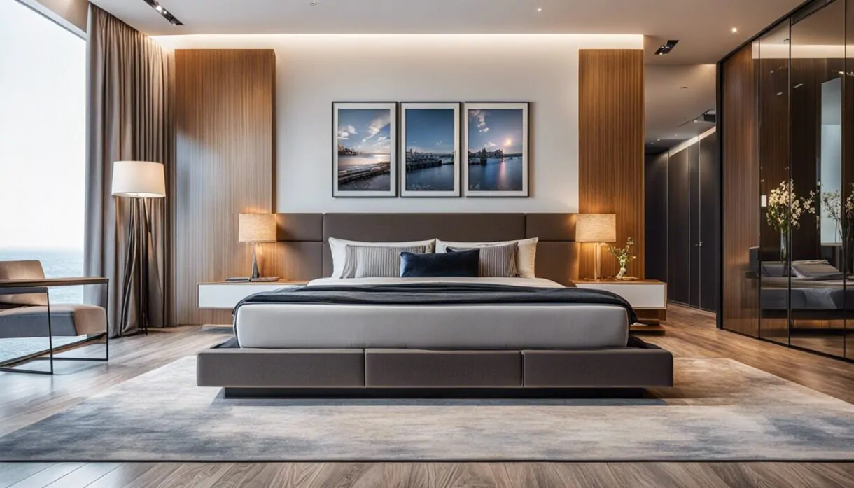 Protagonista di questo ambiente è sicuramente il letto: se volete rimanere su una linea contemporanea, scegliete un modello non complesso, semplice, con la testata imbottita, evitando decorazioni che lo appesantiscono.