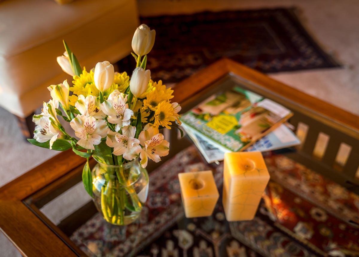 Anche se ogni stanza ha dimensioni diverse, non si deve avere un tavolino così lontano dal divano da non poter raggiungere il proprio drink o mettere i piedi in alto dopo una lunga giornata (a seconda delle regole della casa, ovviamente). Teneteli ad almeno 16″ di distanza, in modo da poterci camminare intorno senza doversi alzare per raggiungerlo.