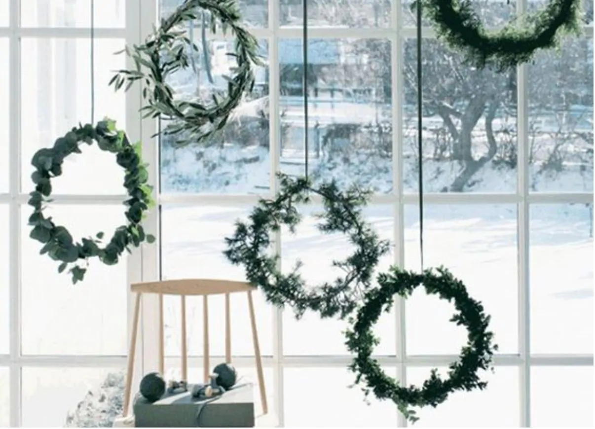 Le ghirlande sono un must del periodo natalizio ed esse, oltre ad essere utilizzate per decorare gli ingressi, possono diventare un ottimo addobbo anche per le finestre. Esse possono essere comprate, sia nei grandi magazzini che nei negozi di giardinaggio. Oppure potrete realizzarla voi tramite l’uso di materiali naturali, oppure riciclando gli addobbi usati per decorare il resto della casa.