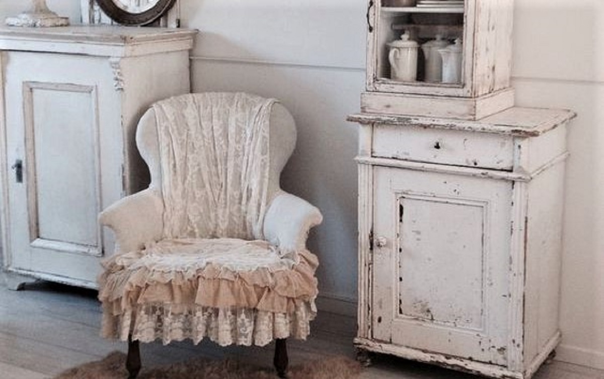 Fondamentali dello stile, sono i mobili invecchiati accompagnati da decorazioni vintage. Molto importanti sono anche volant e fronzoli che donano un aspetto delicato ed elegante alla casa.
