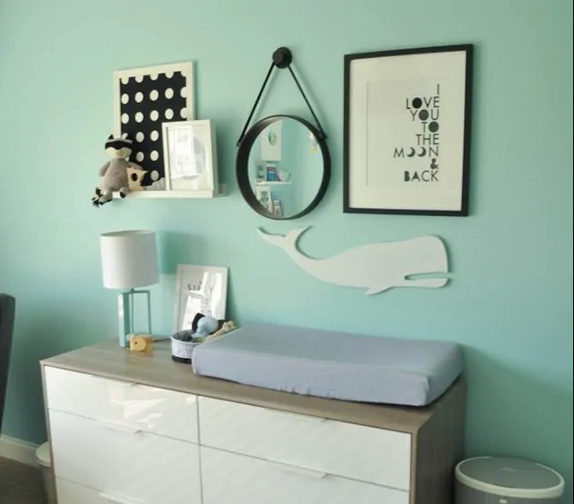 Pronto per un cambiamento di colore? Il verde menta pallido che pende verso il grigio e il blu funziona bene sulle pareti. In una sala da pranzo in stile country, ad esempio, le pareti blu-menta sono abbinate a mobili bianchi per una sensazione di ariosità.