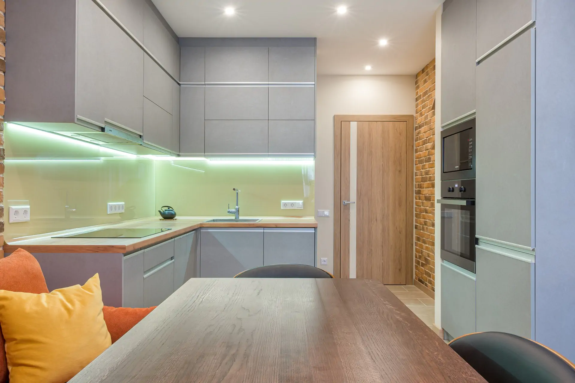 Tutti sanno che la luce naturale è il modo migliore per far sembrare una stanza più grande, ma potresti avere una piccola cucina senza finestre. In questo caso, è possibile inserire una “finestra interna” in una parete interna per prendere in prestito la luce da un’altra stanza. L’altra alternativa è quella di usare uno specchio con un’illuminazione eccessiva per creare un punto focale.