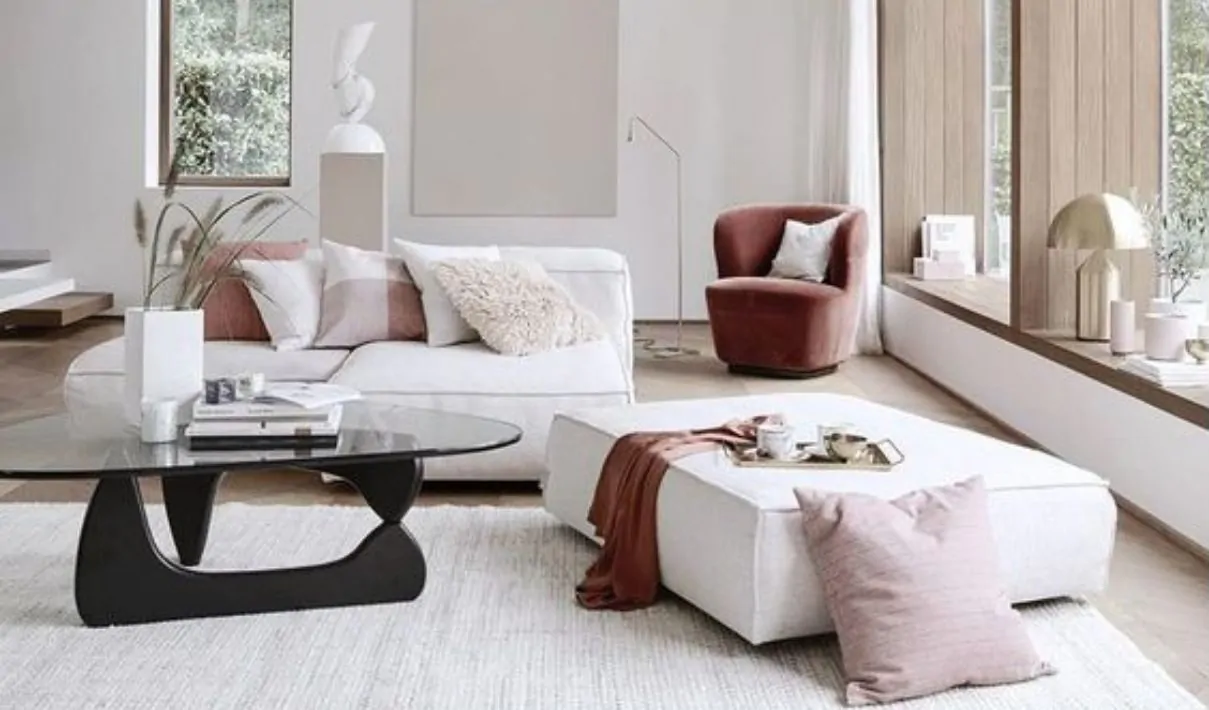 Lo stile minimalista è sicuramente quello più adatto per far sembrare il soggiorno più grande. Un divano snello, un tappeto semplice, una lampada moderna e un paio di cuscini sono soluzioni ottimali per ricreare questo tipo di arredamento.