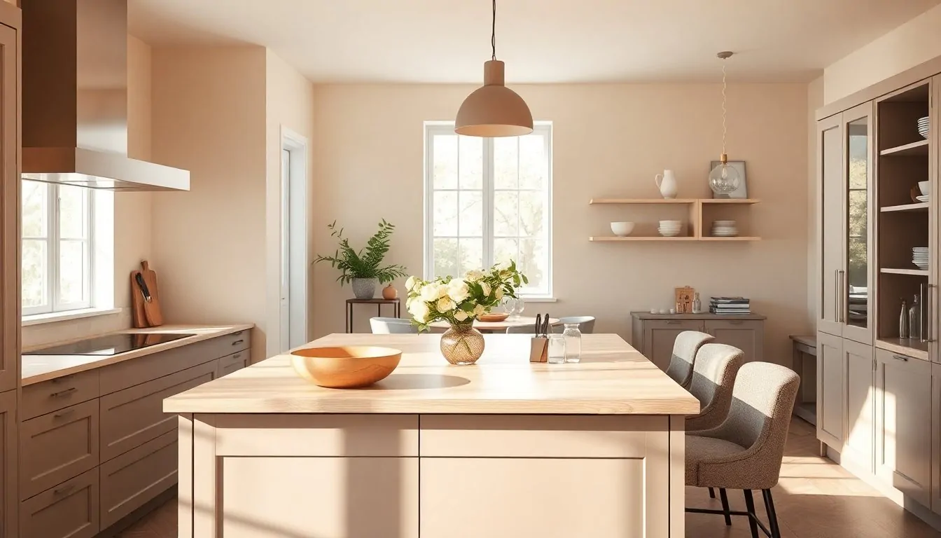 Le tonalità di beige cremoso, taupe accoglienti e texture morbide trasformano la cucina in un rifugio sereno.