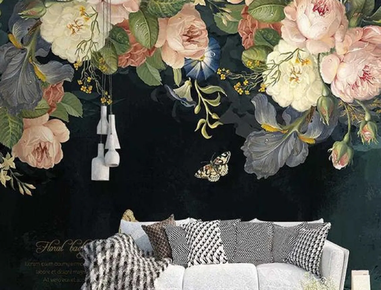 La carta da parati moderna per salotto 3D riprende i temi floreali del passato, ma li rivede in chiave moderna. Un esempio è questa carta da parati importante, che però crea una cornice perfetta per rendere il salotto un luogo di relax avvolgente e unico.