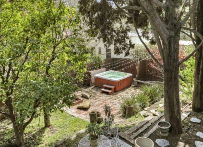 Una foto del periodo dei lavori di ristrutturazione della villa, che però ci fa capire che siamo davanti alla presenza di un idromassaggio da esterno e di un bellissimo giardino quasi in stile Zen. Non molto in vista neanche nelle foto della modella il suo giardino, preferisce tenerlo come angolo relax e di passione per la coppia. Si vedono delle piccole luci appese e possiamo solamente immaginare quanto sarà bello di notte nella vasca idromassaggio essere illuminati da quelle stupende micro stelline.