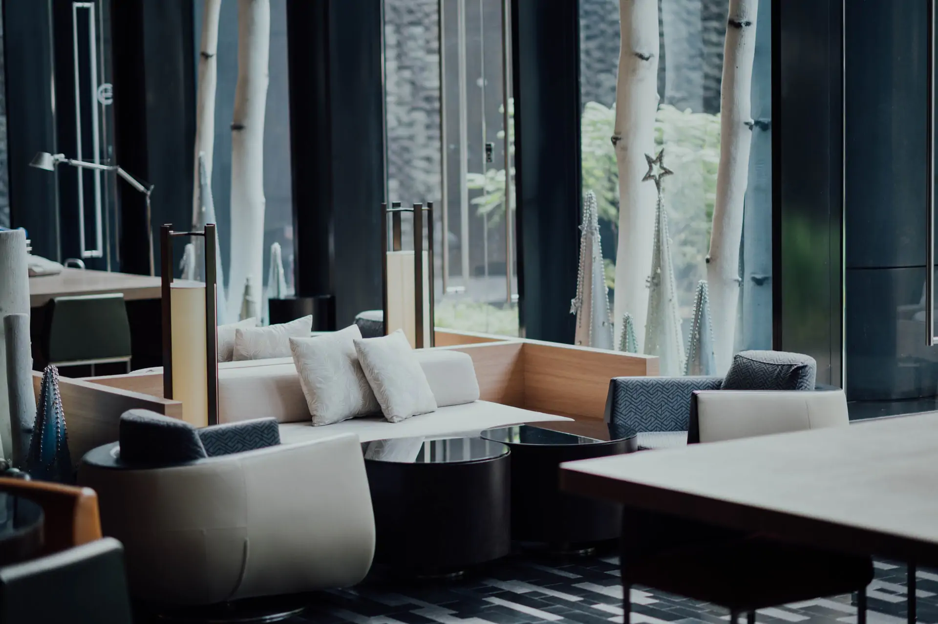Le pareti di cioccolato scuro in una camera da letto, inoltre, sono davvero impattanti, e il lampadario sopra la testa imita persino le stelle. Quasi tutto il resto è fresco e moderno in cioccolato e bianco – le lenzuola, il tappeto geometrico, i comodini compatti, le piccole lampade da comodino e il sottile pouf imbottito ai piedi del letto.
