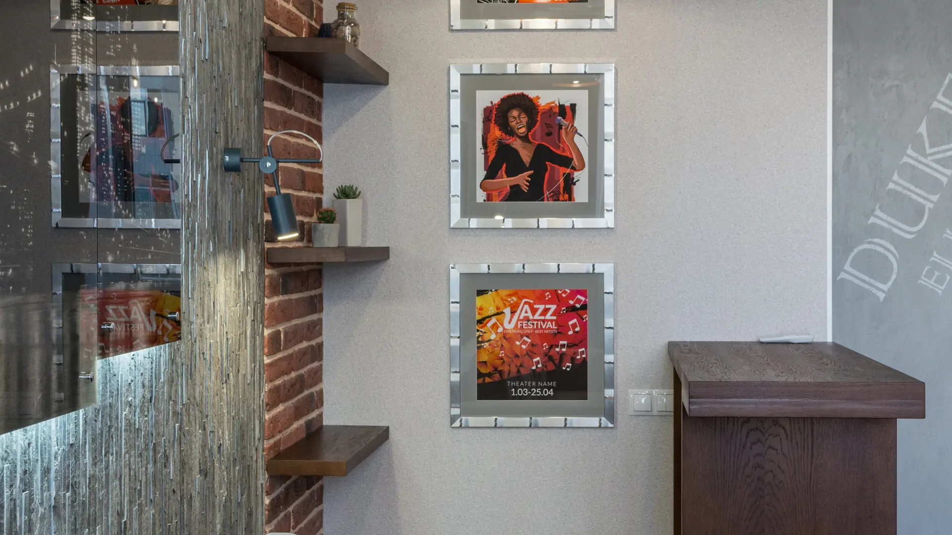 I corridoi possono spesso essere stretti e senza caratteristiche, quindi usa combinazioni di colori eccitanti per creare una caratteristica interessante. Utilizzare questo trucco è poco costoso e può essere cambiato e aggiornato quando ti stanchi della tua ultima combinazione. Completa il look con un paio di accessori e pratici scaffali dipinti per abbinare il tuo schema.