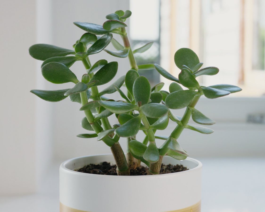 Se ricordarsi di annaffiare è una lotta, la pianta di giada può essere proprio quello che ti serve. Questa pianta a crescita lenta può sopravvivere per settimane e persino mesi senza acqua perché immagazzina ciò di cui ha bisogno nei suoi steli carnosi e nelle foglie. Man mano che cresce, i fusti spessi si ramificano come un piccolo arbusto o un albero, il che aggiunge un contrasto divertente quando viene coltivato insieme ad altre piante grasse dalle forme tozze.