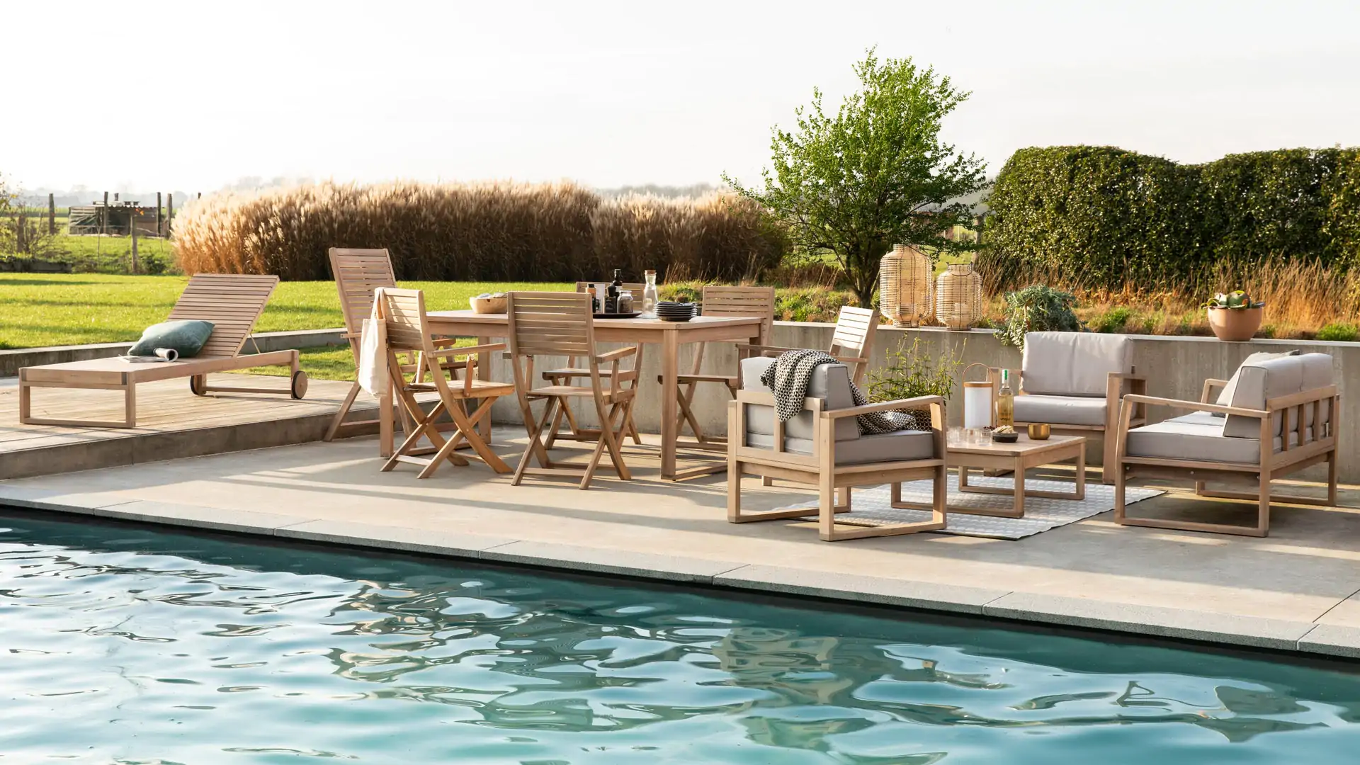 Si parte da un grande classico, ovvero poltrone pieghevoli in legno. Realizzate in legno di teak, quindi molto resistente, garantirà un ottimo risultato visivo al vostro giardino.