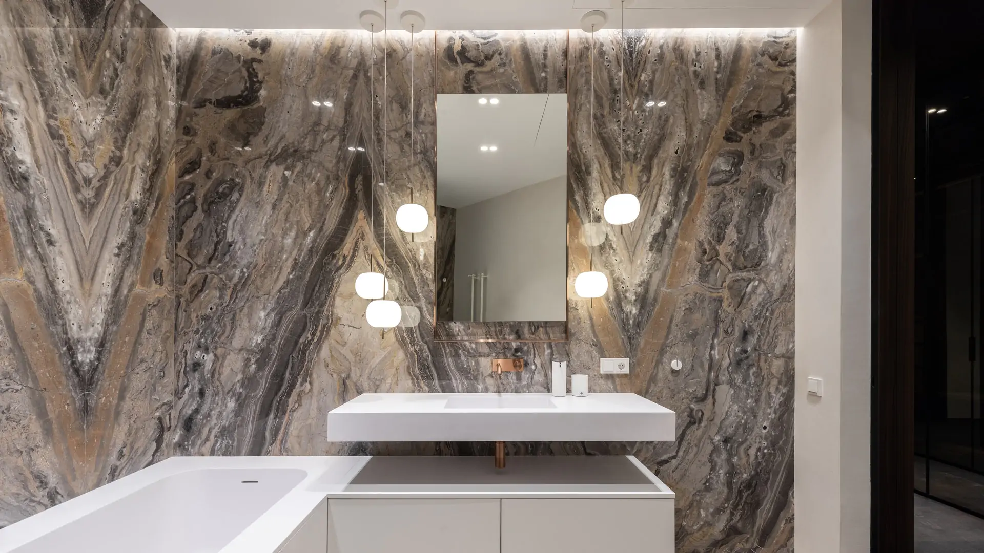 Un’altra cosa molto importante: scegli con cura gli apparecchi di illuminazione del bagno. L’illuminazione del bagno può essere spesso trascurata, ma è essenziale implementare uno schema di illuminazione a strati. Non scegliere un soffitto pieno di faretti come unica fonte di illuminazione, pensa piuttosto a strati di luce per creare diversi stati d’animo, proprio come faresti con qualsiasi altra stanza. Assicurati anche di avere il giusto grado di protezione IP, adatto a dove sarà posizionata l’illuminazione.