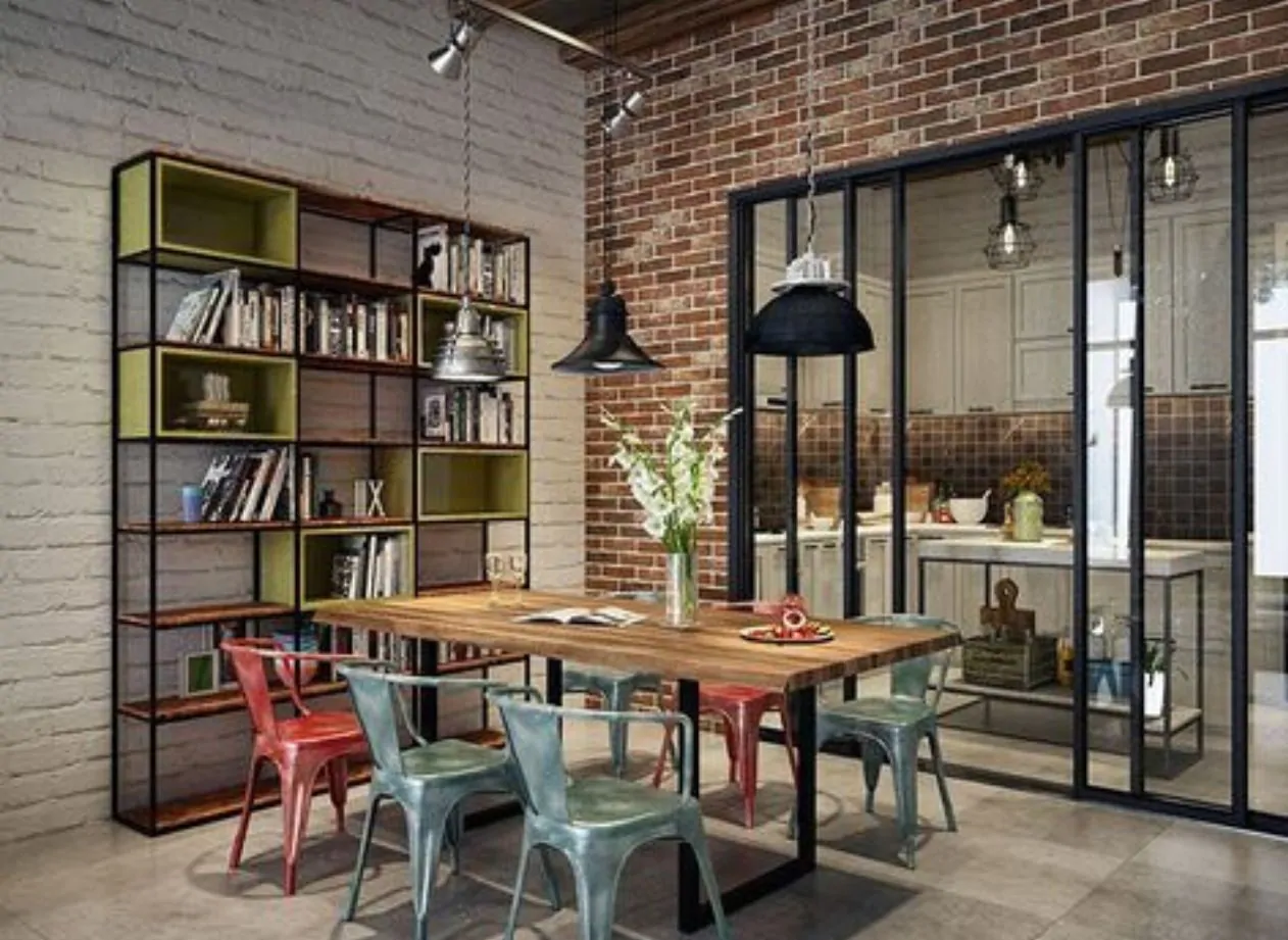 Se questa è la premessa, allora la sala deve essere un ambiente grande, dagli alti soffitti in legno e, magari, con tubature a vista. È bene, nello stile industrial, lavorare per preservare la tradizione vintage che è proprio il carattere. Per questo motivo vanno bene elementi di: