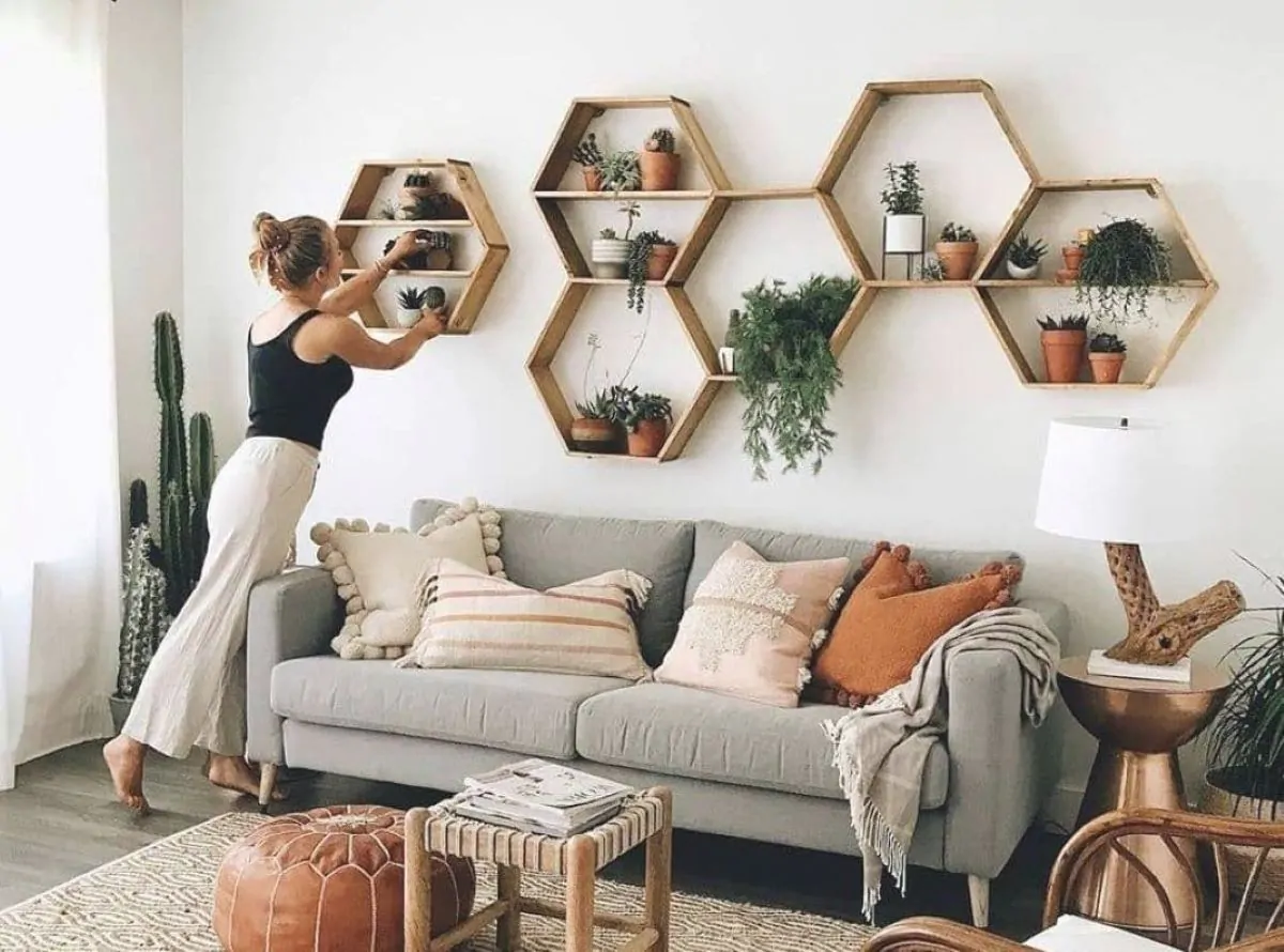 Avete mai pensato di arricchire le pareti di casa con degli scaffali in legno esagonali? Lasciate che sia la natura a guidare il design della vostra prossima parete vuota. La forma a nido d’ape di queste mensole esagonali in legno fai da te ha un design unico e offre un’ampia superficie per esporre i vostri ricordi preferiti.