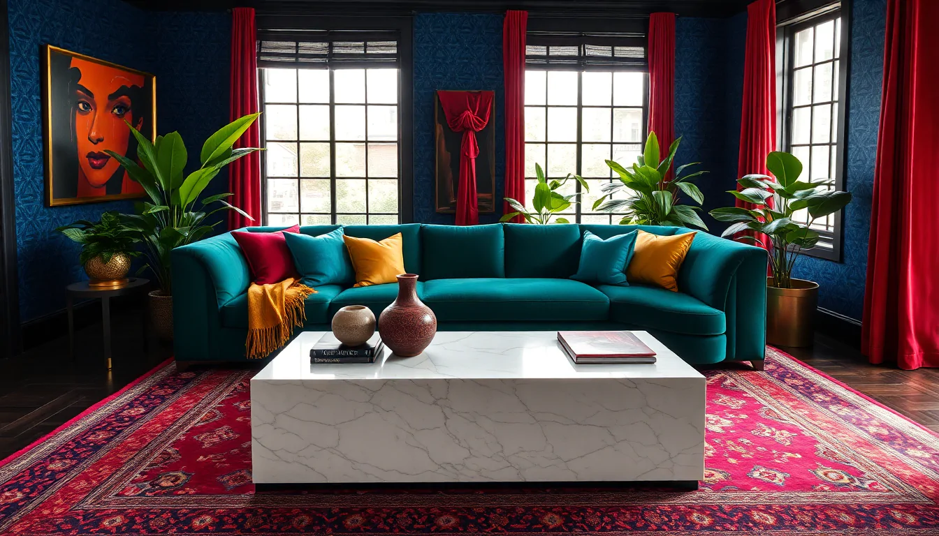 In questo contesto, il colore gioca un ruolo determinante. Toni ricchi e intensi, come il verde smeraldo o il blu zaffiro, possono essere utilizzati per mettere in risalto elementi chiave, creando un senso di grandiosità. Combinati con texture lussuose come il velluto o l’oro, questi colori possono dirigere l’attenzione e bilanciare l’ambiente, mantenendo un’aura di eleganza. Ti immagini come un accostamento di colori così vivaci possa trasformare il tuo soggiorno?