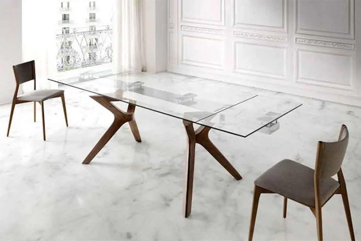 Altro abbinamento molto moderno raffinato, è quello realizzato con il legno. I tavoli in cristallo moderni, si caratterizzano anche per l’uso innovativo dei materiali naturali. Troveremo quindi tavoli con delle articolate basi, che diventano un vero e proprio pezzo d’arte, realizzate con l’elemento che più porta naturalità all’interno della stanza. Noi vi consigliamo di abbinare le sedie al colore del legno della base del tavolo, solitamente i rivenditori prevedono, per mantenere la coerenza tra i vari complementi d’arredo, dei veri e propri set, per accompagnare al meglio tavolo e sedie. Questo abbinamento è, secondo noi, una buona scelta anche per gli amanti dello stile nordico, in quanto permette l’utilizzo dell’elemento naturale anche in un contesto più moderno.