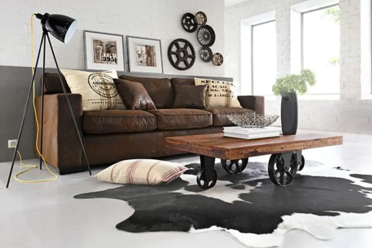 Originale ed eccentrico, il tappeto in pelle si adatta perfettamente all’arredamento in stile industriale. Può presentare diverse tonalità e dimensioni e la forma permette di coprire solo una parte della pavimentazione, in modo da mostrare il materiali grezzo della pavimentazione, tipico di questo arredamento.