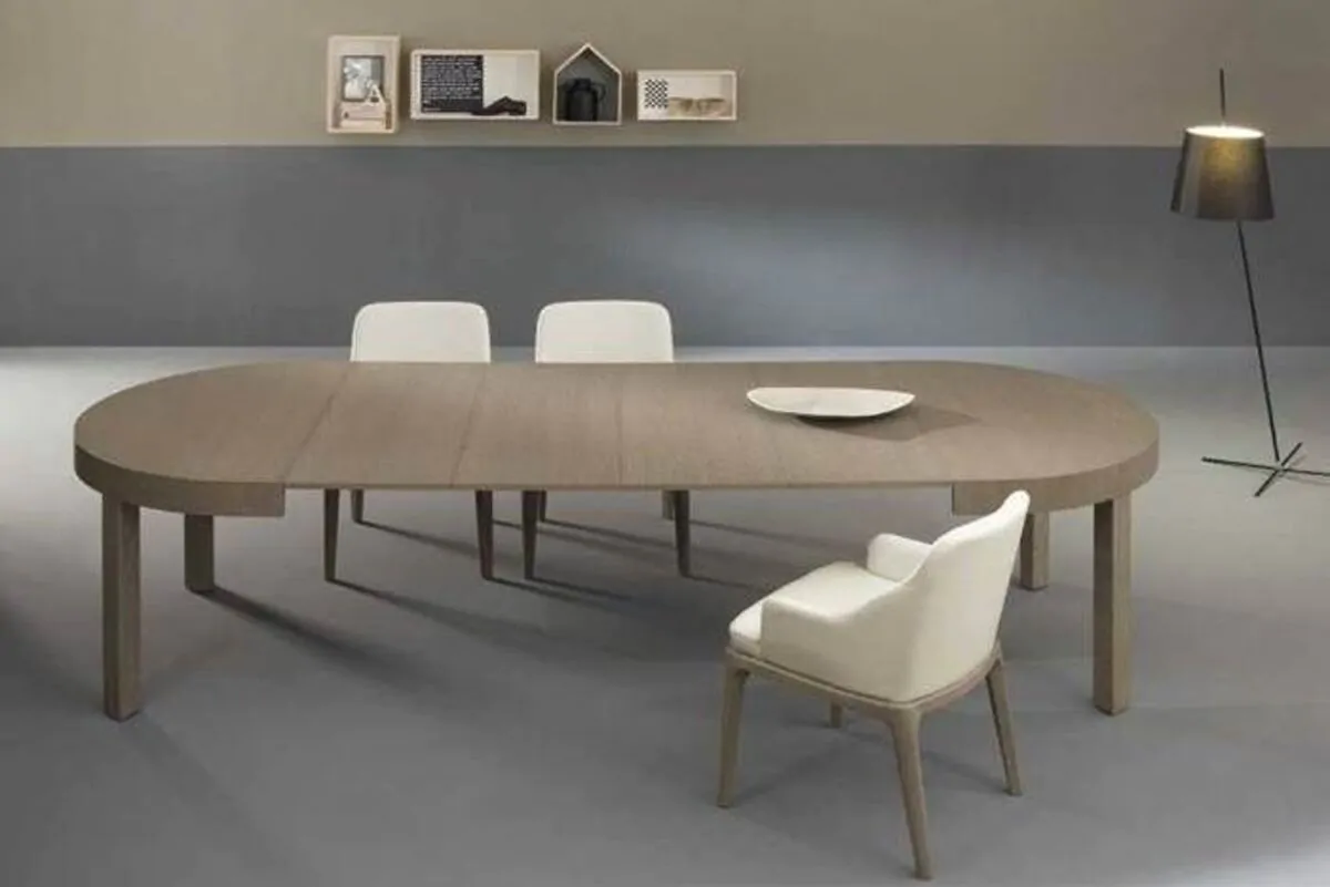 Una delle soluzioni più innovative è quella del tavolo allungabile rotondo; cerchi o ovali che si sovrappongono, ruotando attorno a perni o con soluzioni a comparsa, andando ad aumentare la propria dimensione e donando dinamicità e movimento alla stanza.