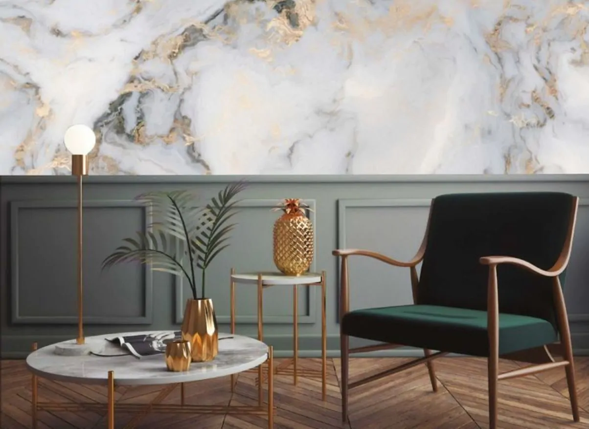 Sempre in tema di materiali, torna il marmo. La novità rispetto al passato, è stata l’apertura dei designer ad esperimenti che prevedono la creazione di un carta da parati che assume l’aspetto del marmo tridimensionale, attraversato da venature oro o di altri colori.