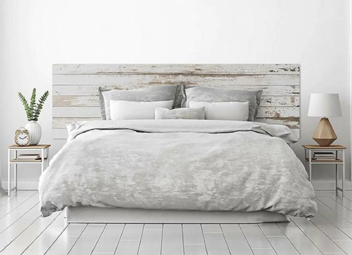 Un’alternativa per ravvivare la testiera del tuo letto, può essere quella di utilizzare una vernice bianca. Il bianco dà interesse vivo e consistenza senza soffocare l’ambiente.