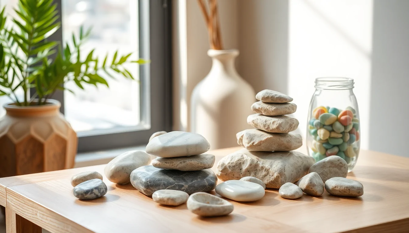 Per chi ama il design minimalista, i sassi possono essere utilizzati per realizzare un giardino zen da tavolo. Pochi elementi, come ciottoli, sabbia e piccole piante, possono trasformare un angolo del soggiorno in un’oasi di tranquillità. Questo spazio non solo sarà un piacere per gli occhi, ma offrirà anche un momento di relax e meditazione.