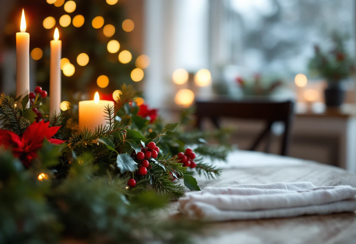 Un centrotavola ben progettato è il protagonista indiscusso della tavola natalizia. Per un effetto sorprendente, combina fiori come amaryllis e rose con dettagli naturali come rami di eucalipto e bacche di hypericum. Le ghirlande da tavolo, realizzate con rami di abete e decorazioni natalizie, possono aggiungere un tocco di eleganza rustica. Se preferisci uno stile più moderno, opta per un vaso trasparente con orchidee bianche e qualche ramo secco decorato con glitter. Questo tipo di centrotavola si adatta perfettamente a tavole contemporanee e ambienti sobri.